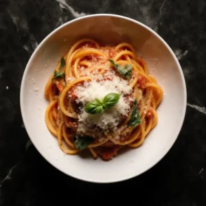 Traditional San Marzano tomato sauce, Parmesan cheese, and fresh basil.