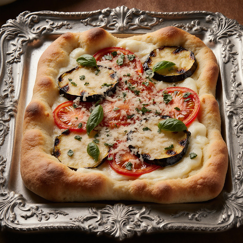 A Sicilian classic with tomato, eggplant, salted ricotta, and fresh basil