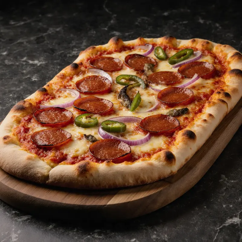 Queso provolone con base de tomate, orégano y butifarra italiana